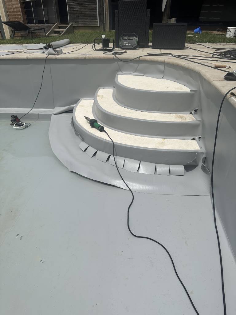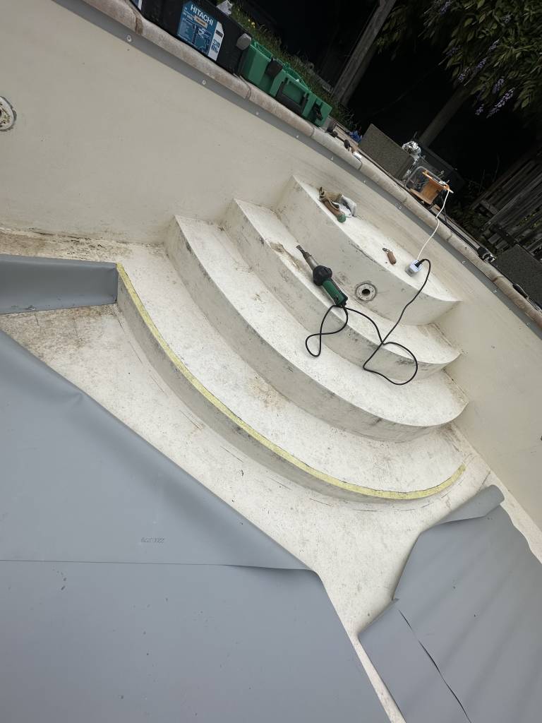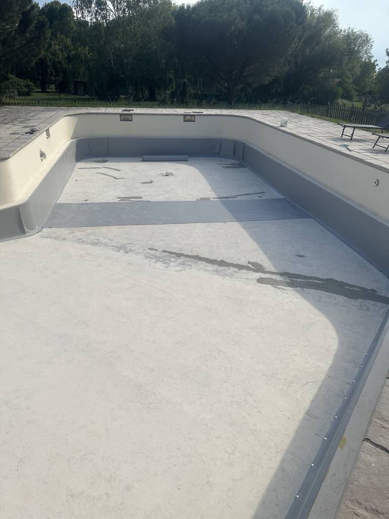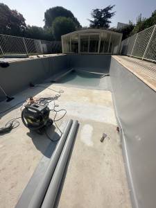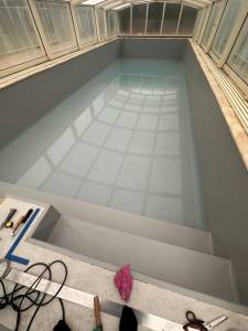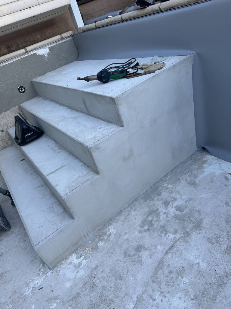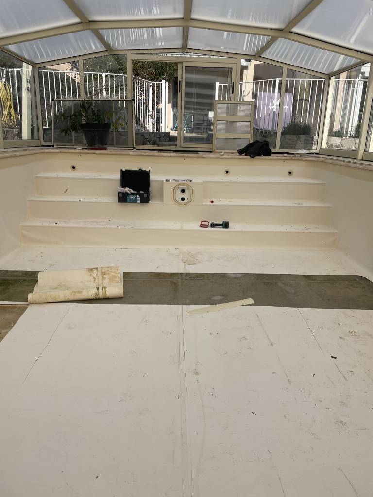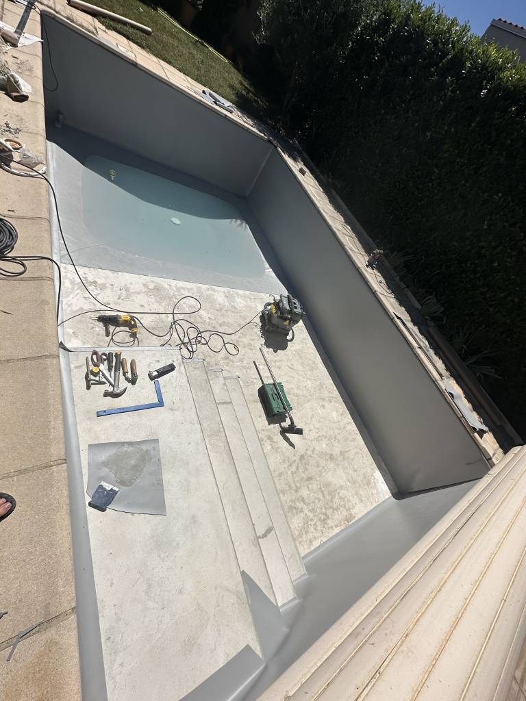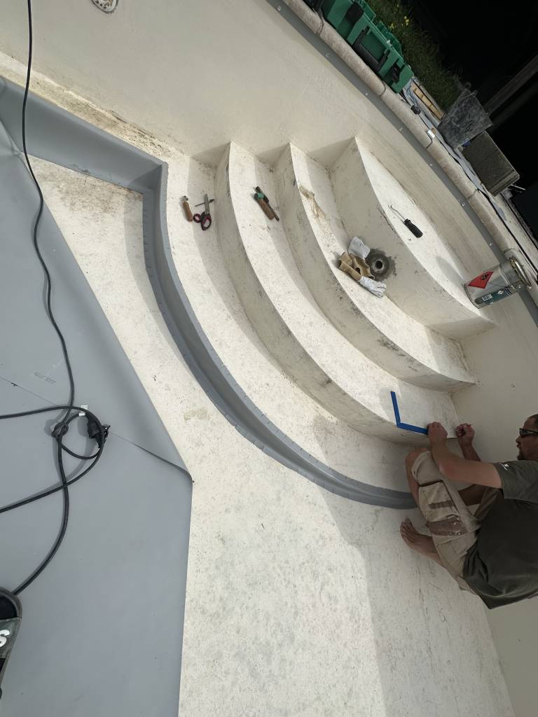 Reprise du fond, des escaliers et des plages / Pose d’un PVC armé