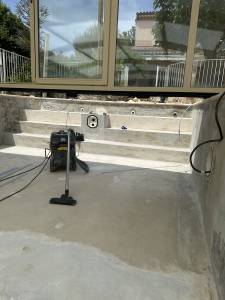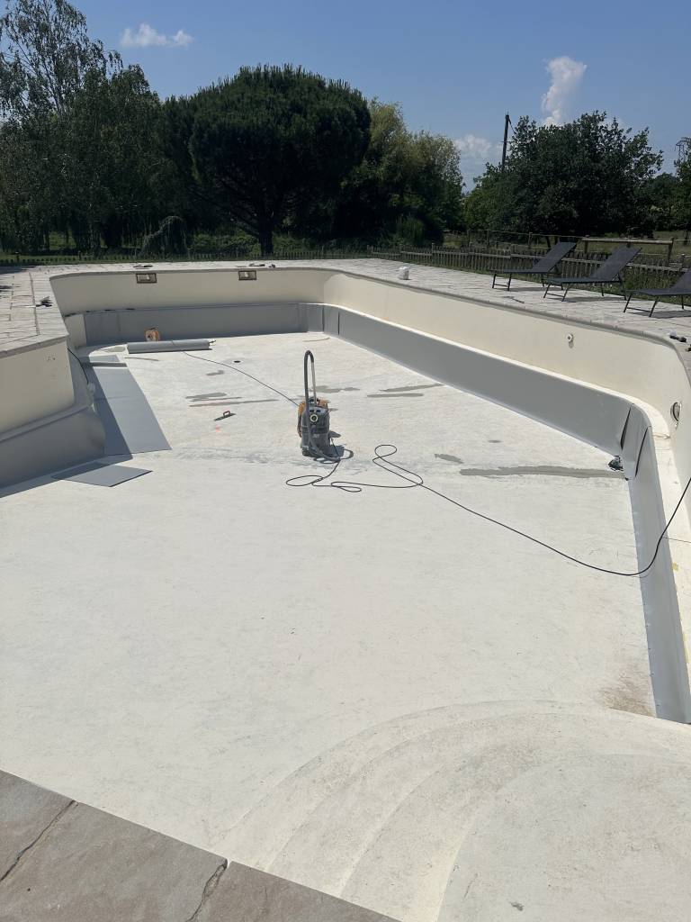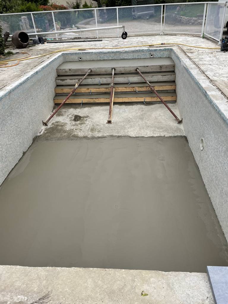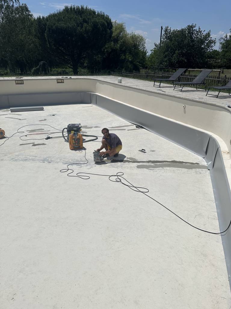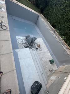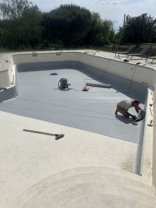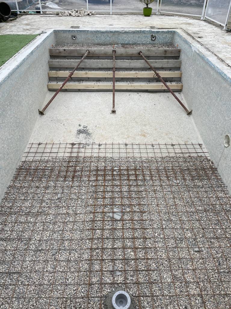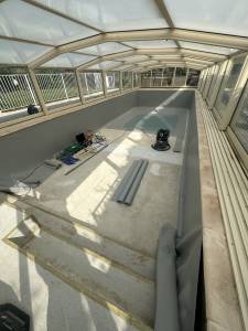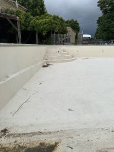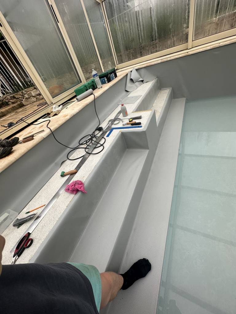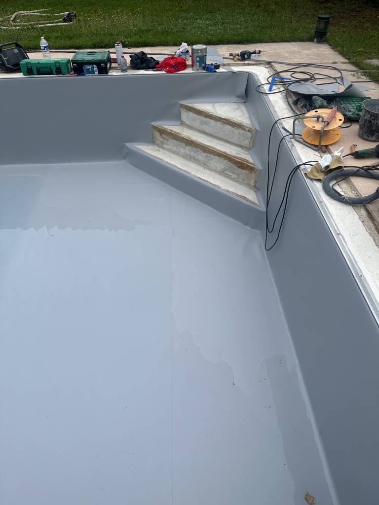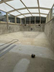 Reprise du fond, des escaliers et des plages / Pose d’un PVC armé