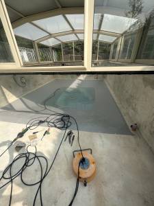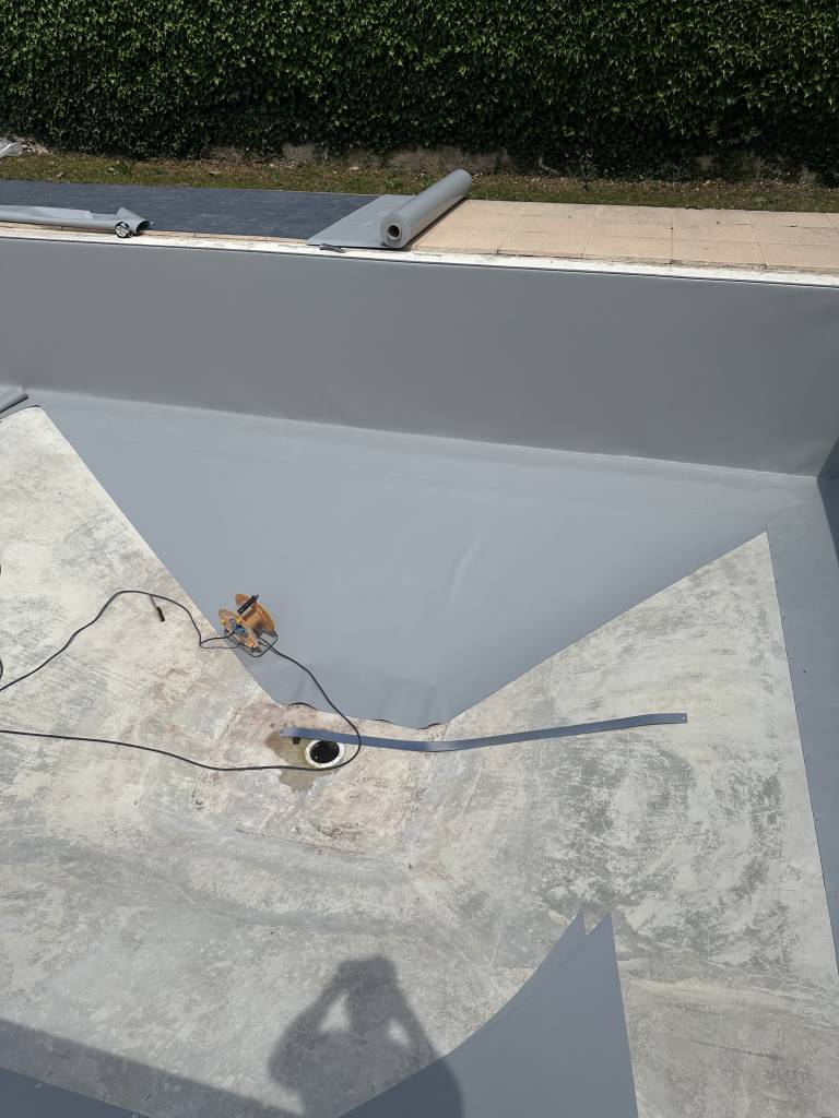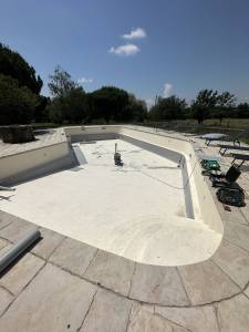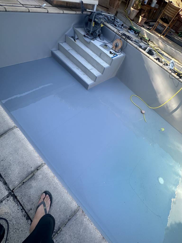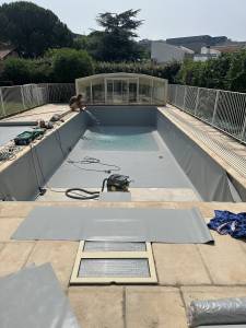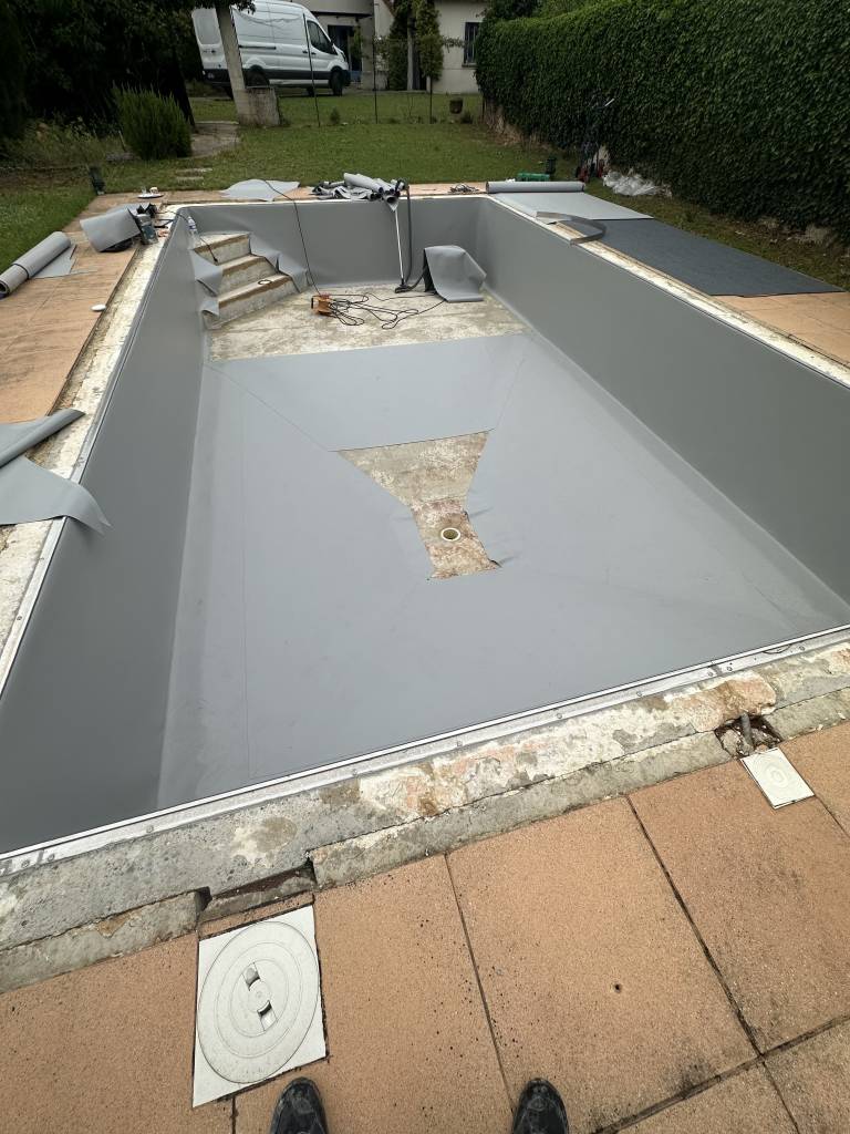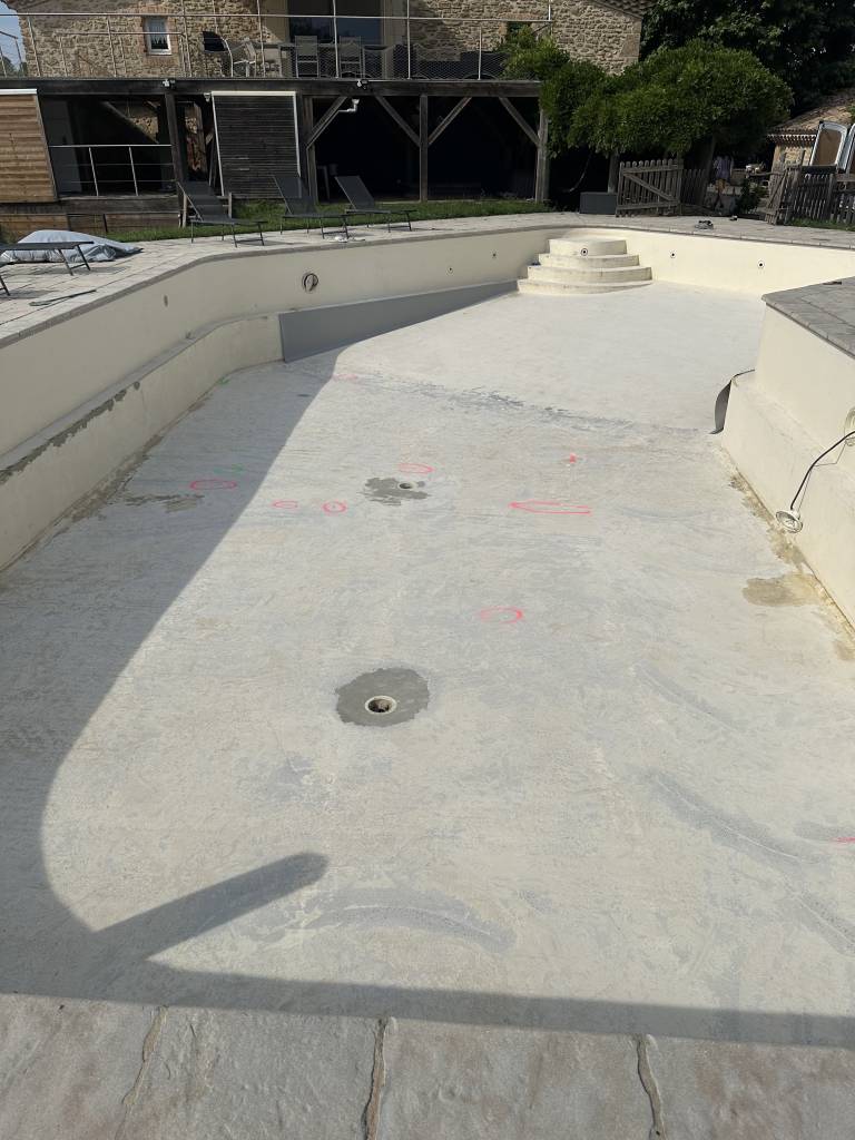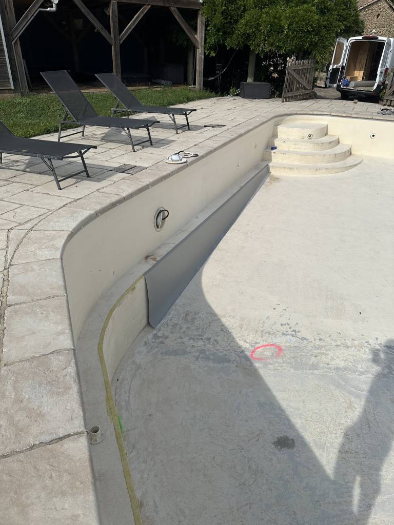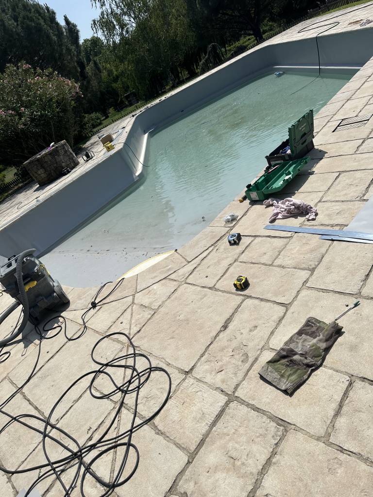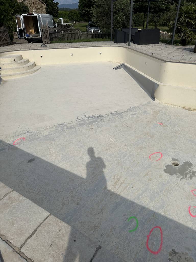 Reprise du fond, des escaliers et des plages / Pose d’un PVC armé