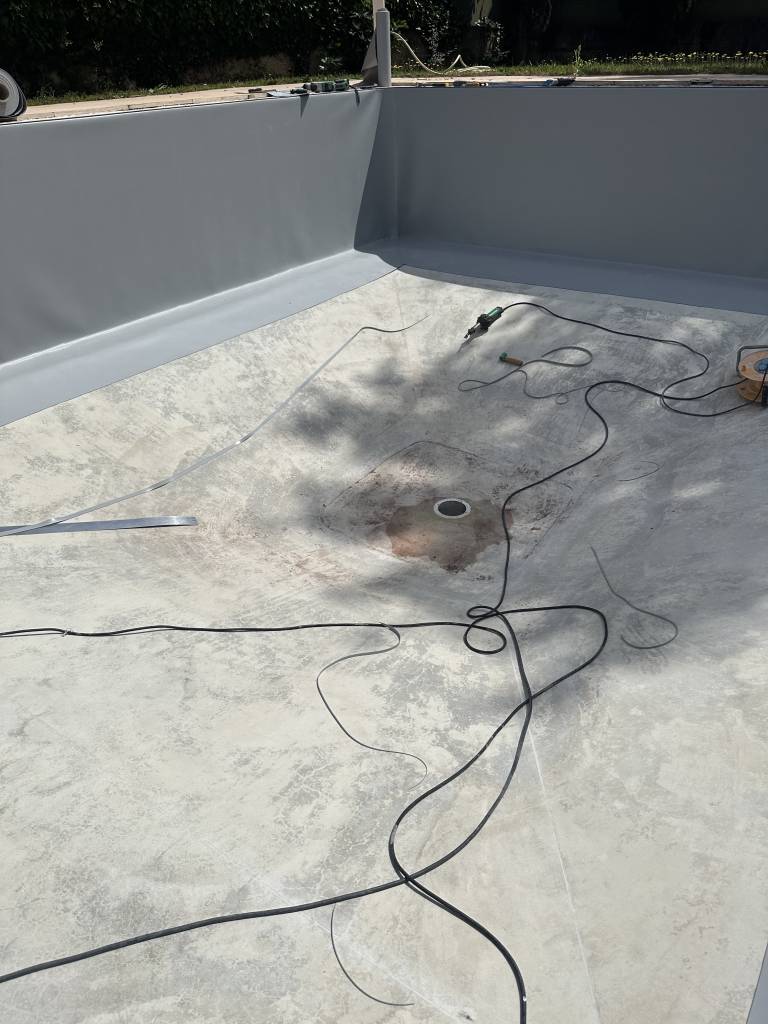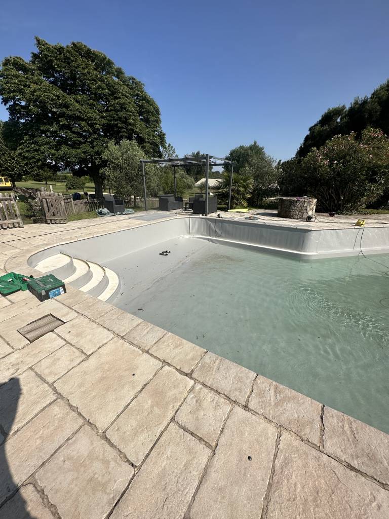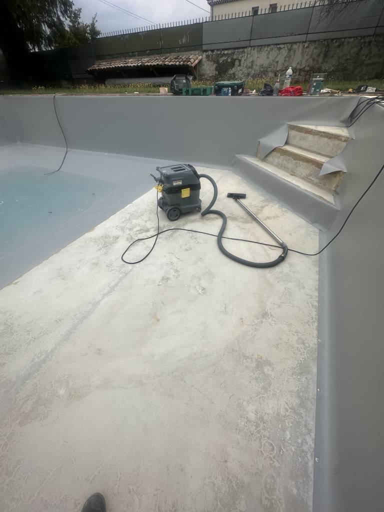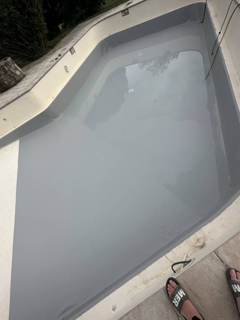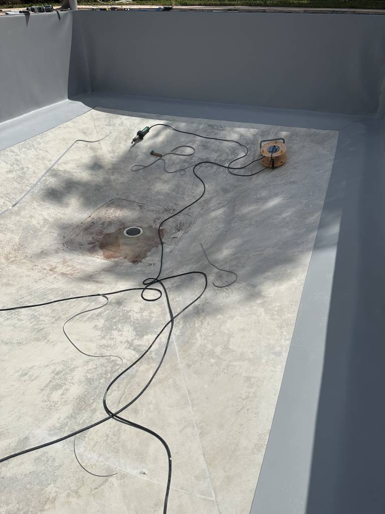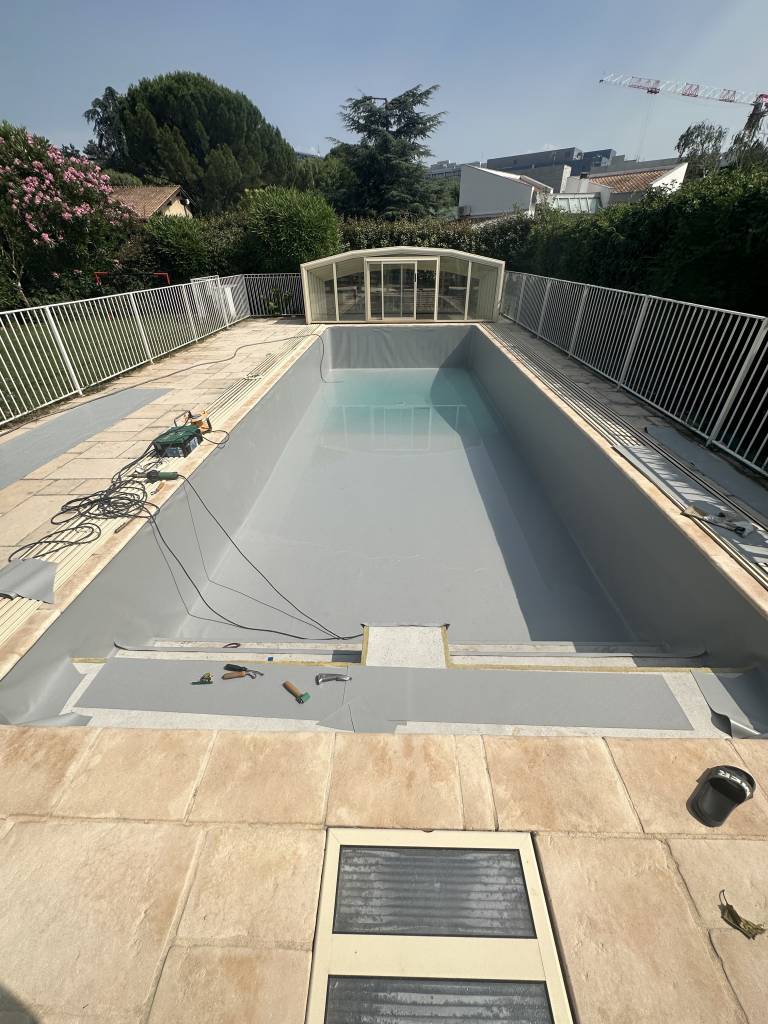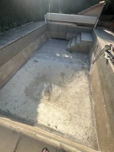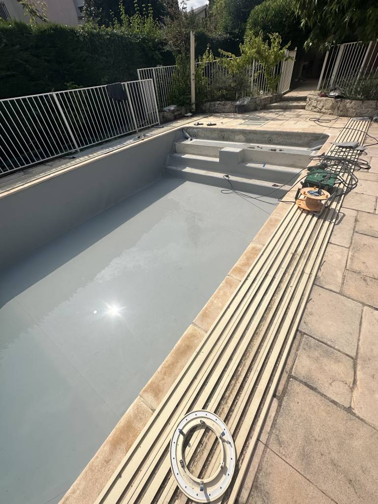 Reprise du fond, des escaliers et des plages / Pose d’un PVC armé