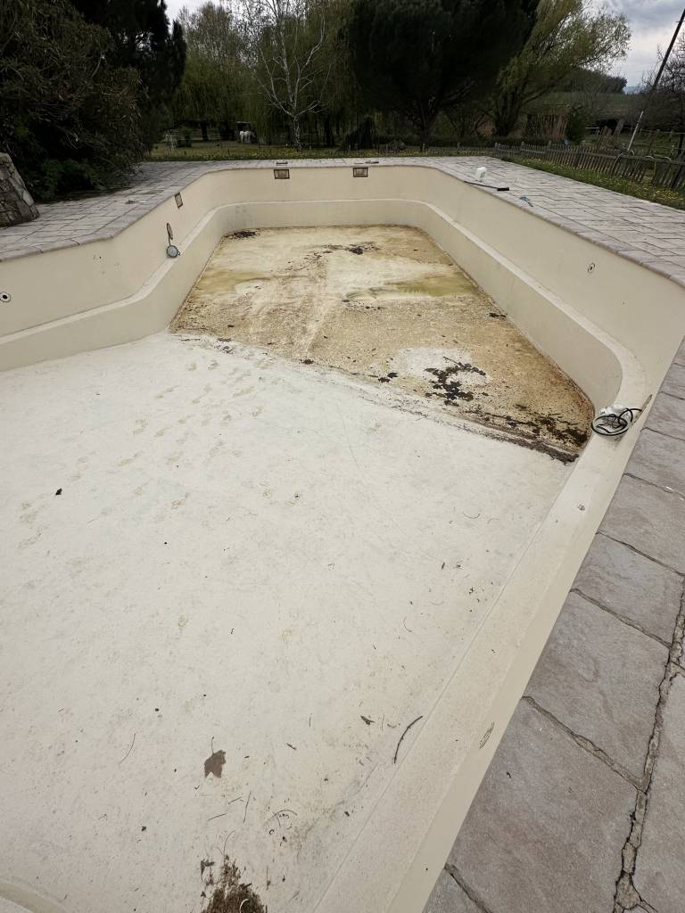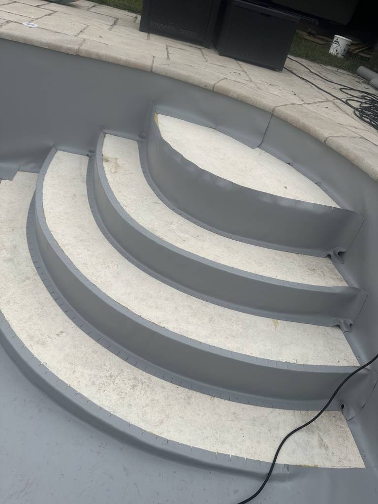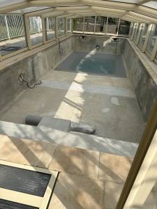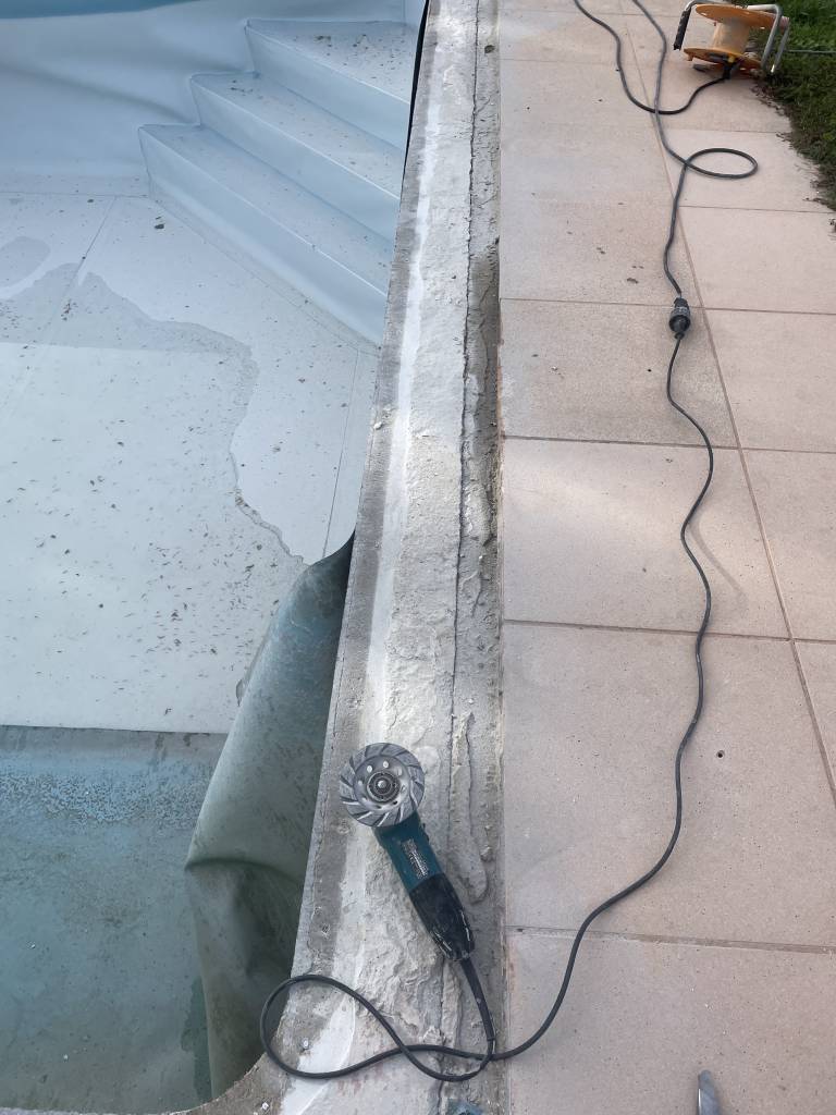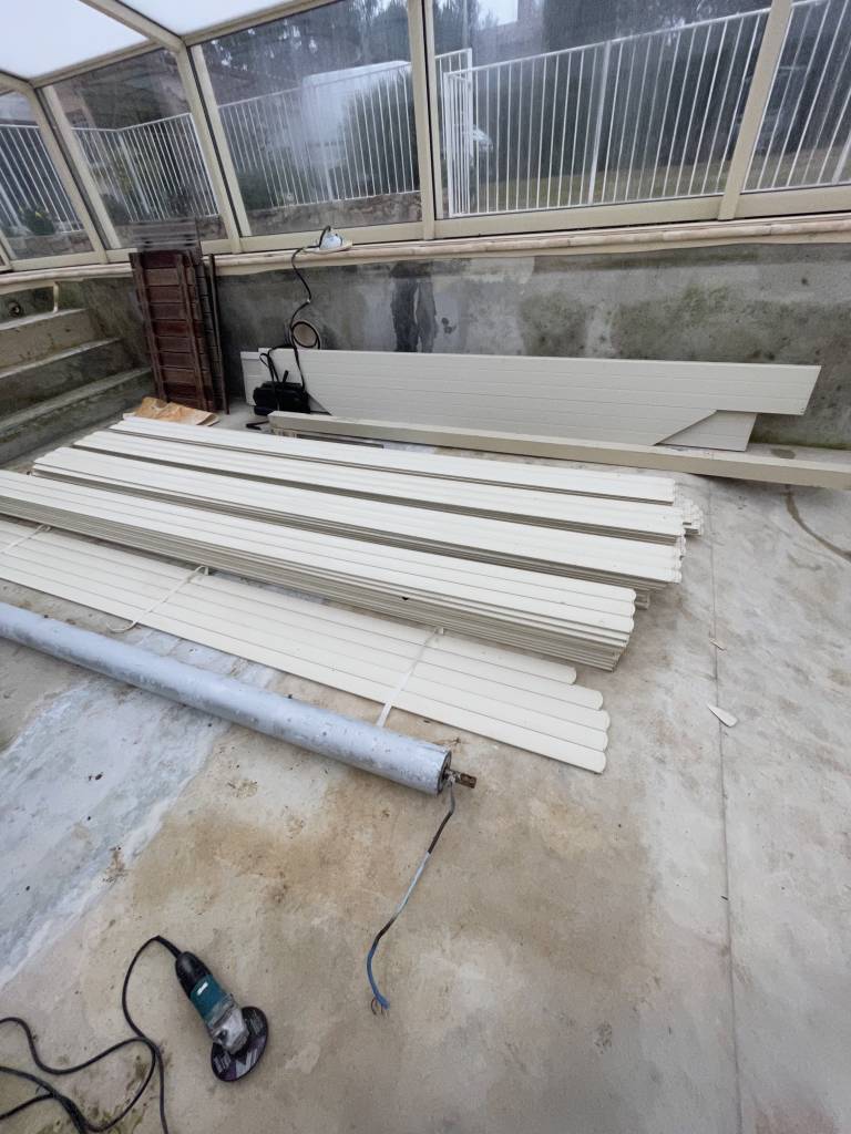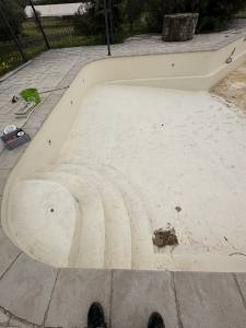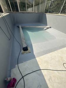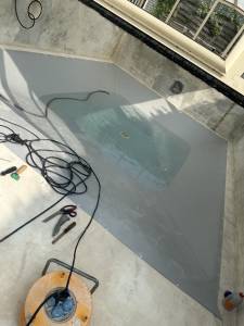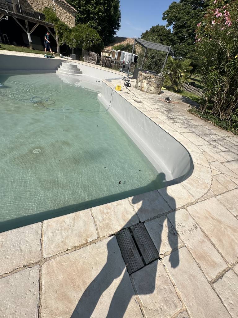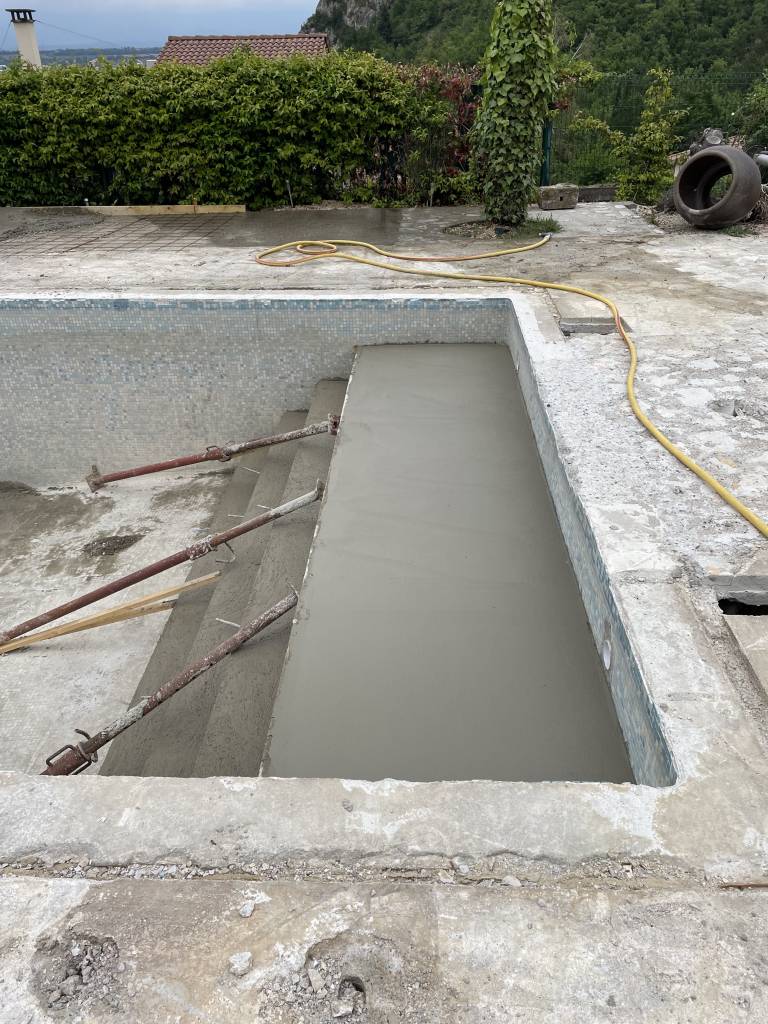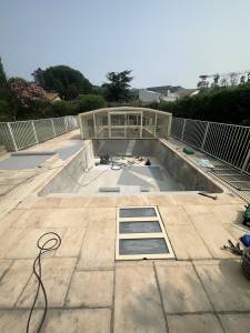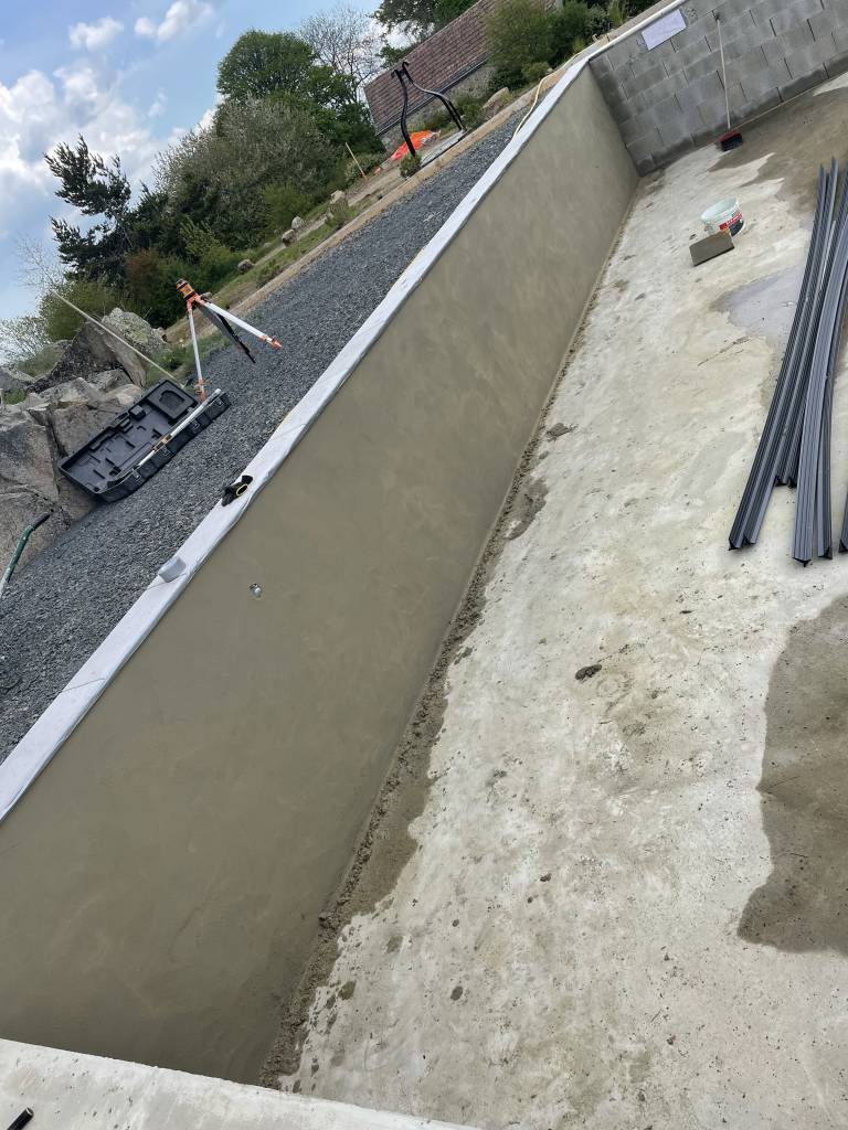 Reprise du fond, des escaliers et des plages / Pose d’un PVC armé