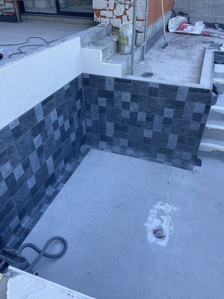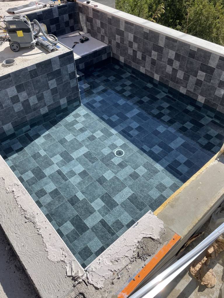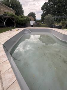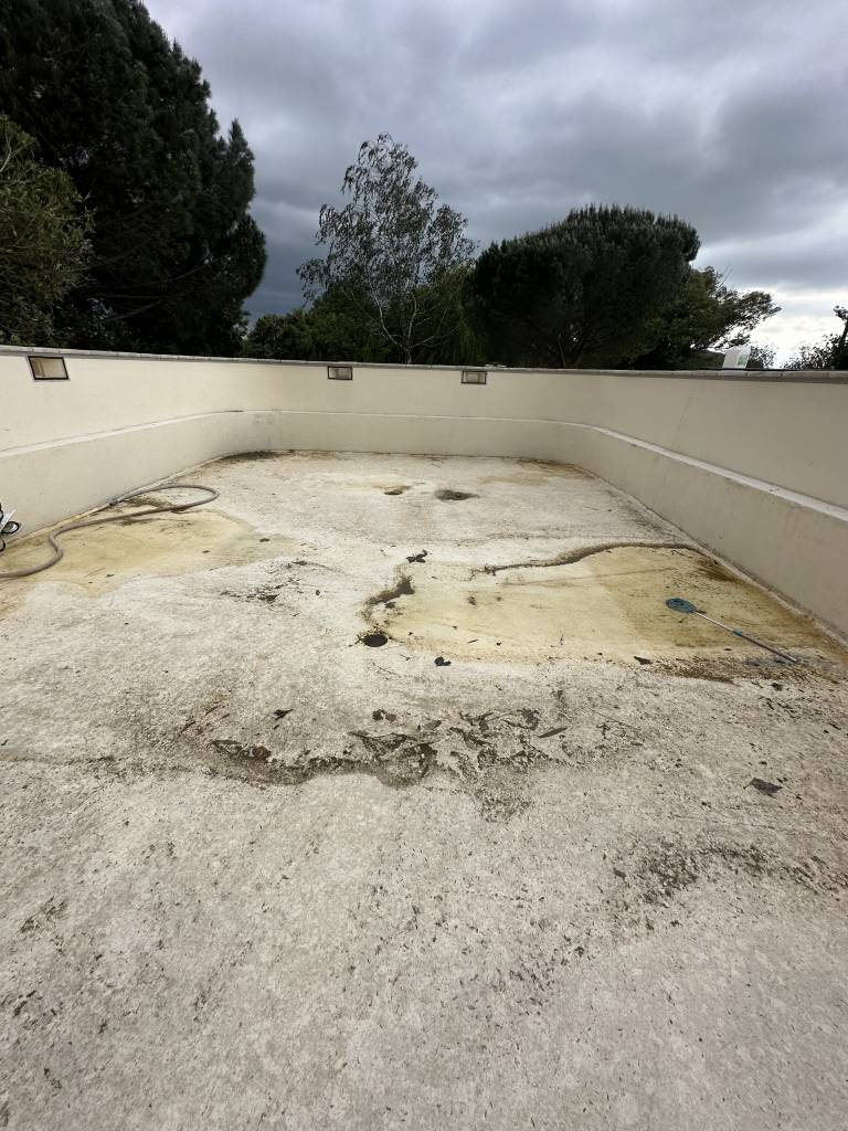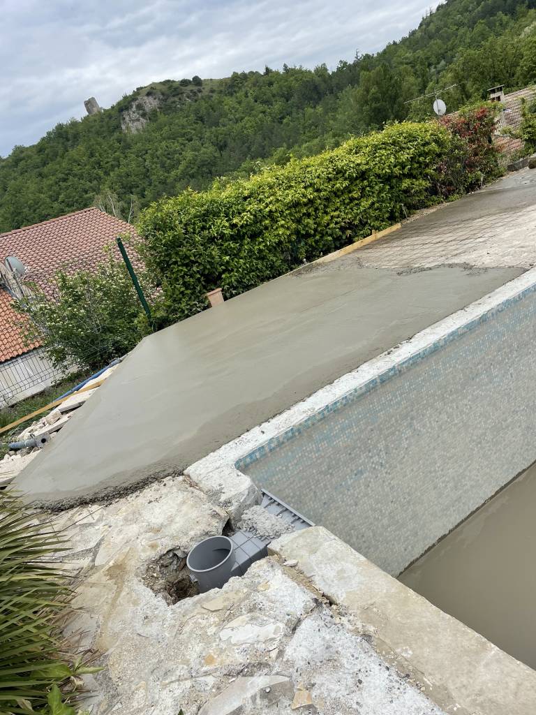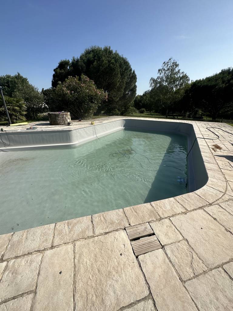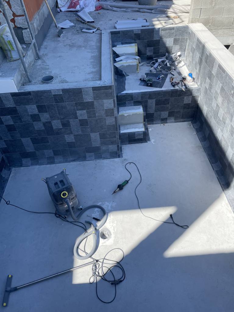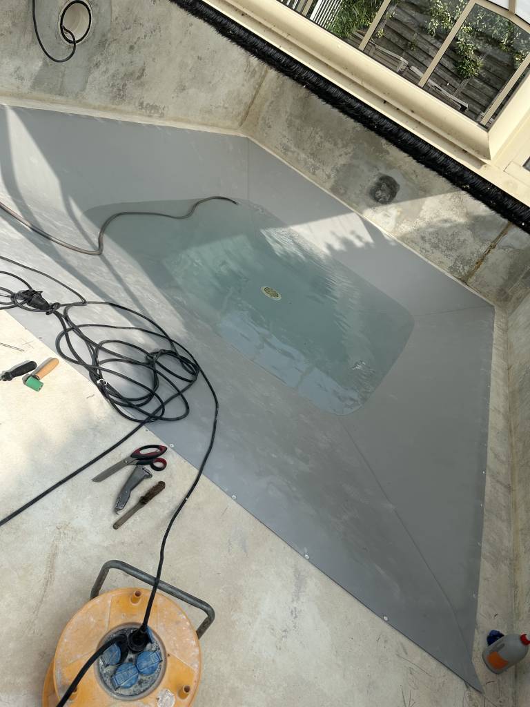 Reprise du fond, des escaliers et des plages / Pose d’un PVC armé