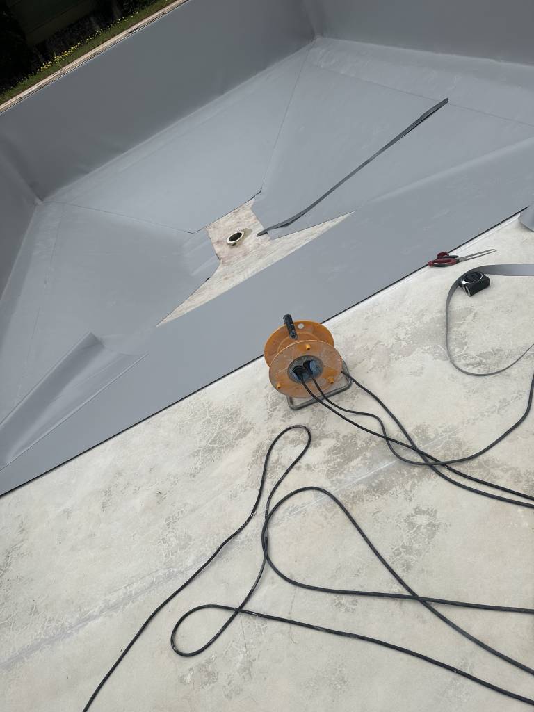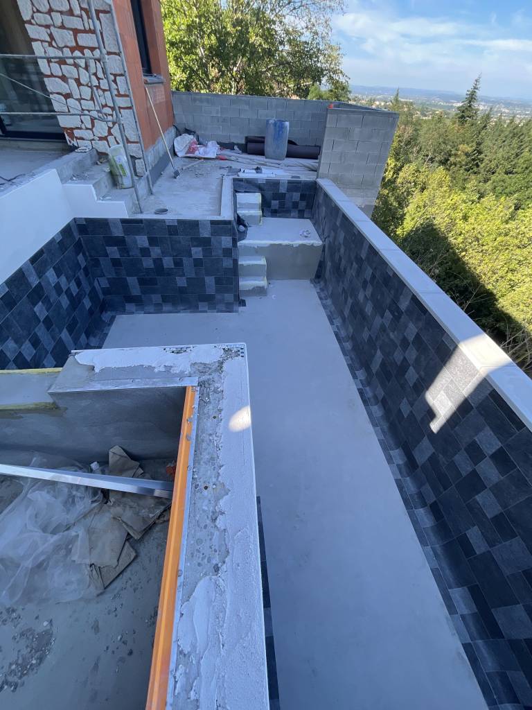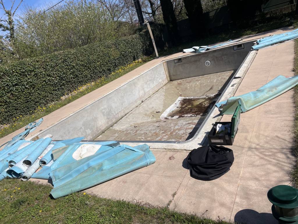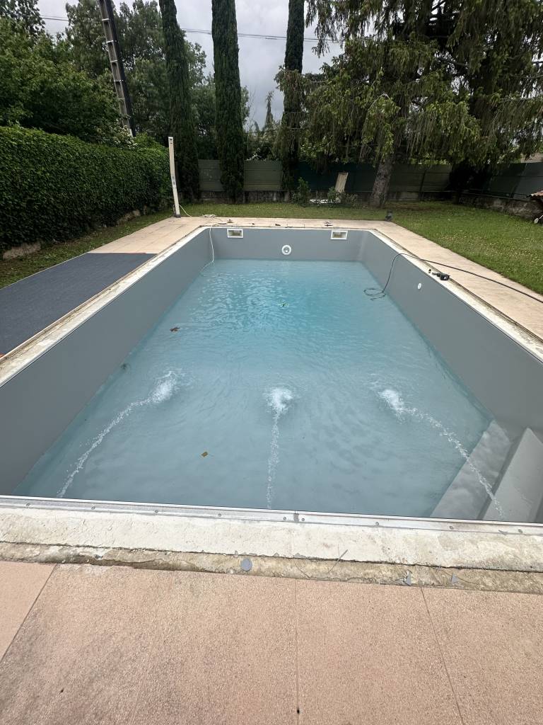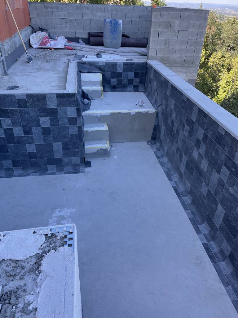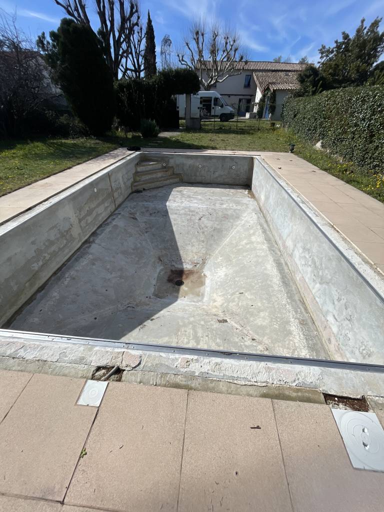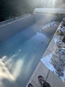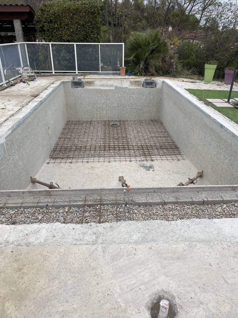 Reprise du fond, des escaliers et des plages / Pose d’un PVC armé