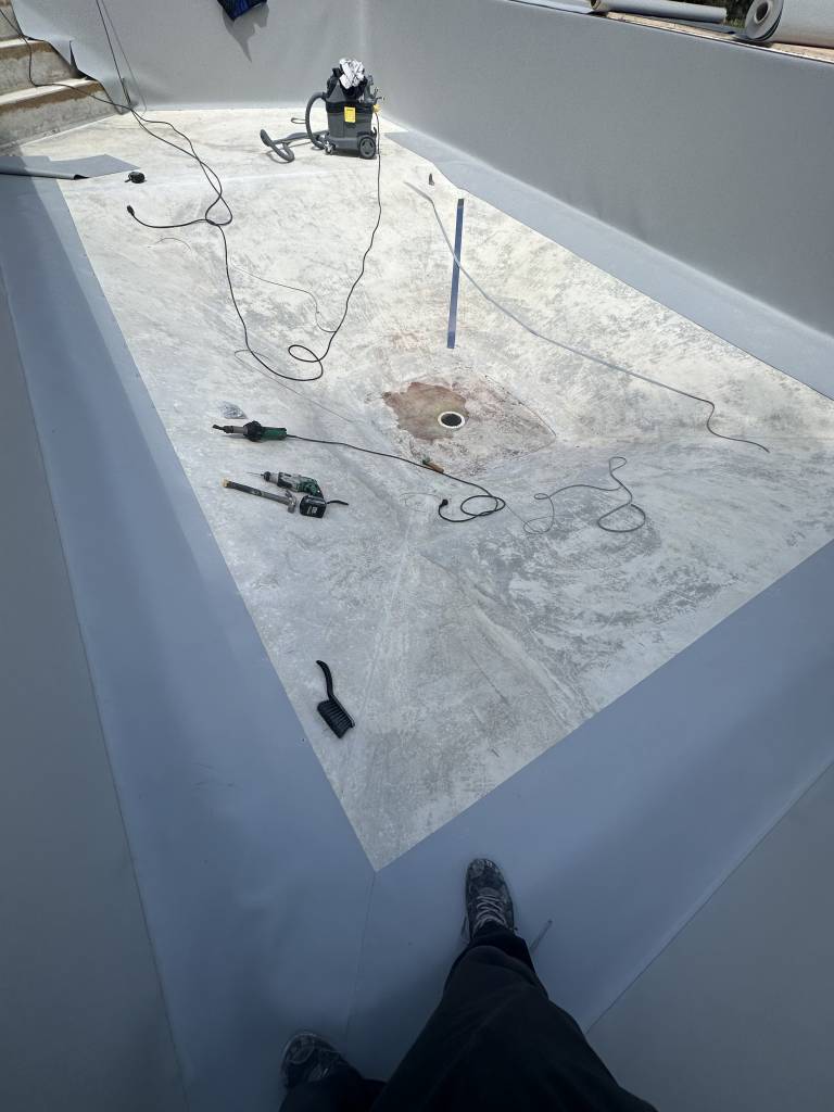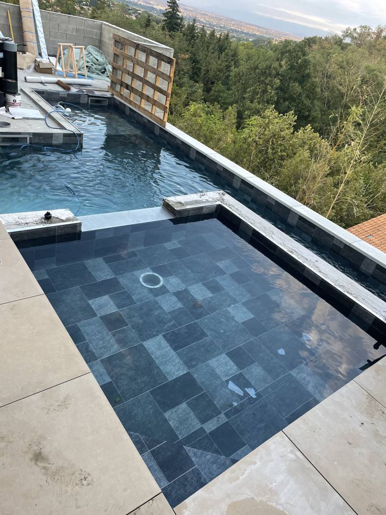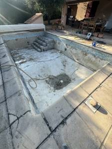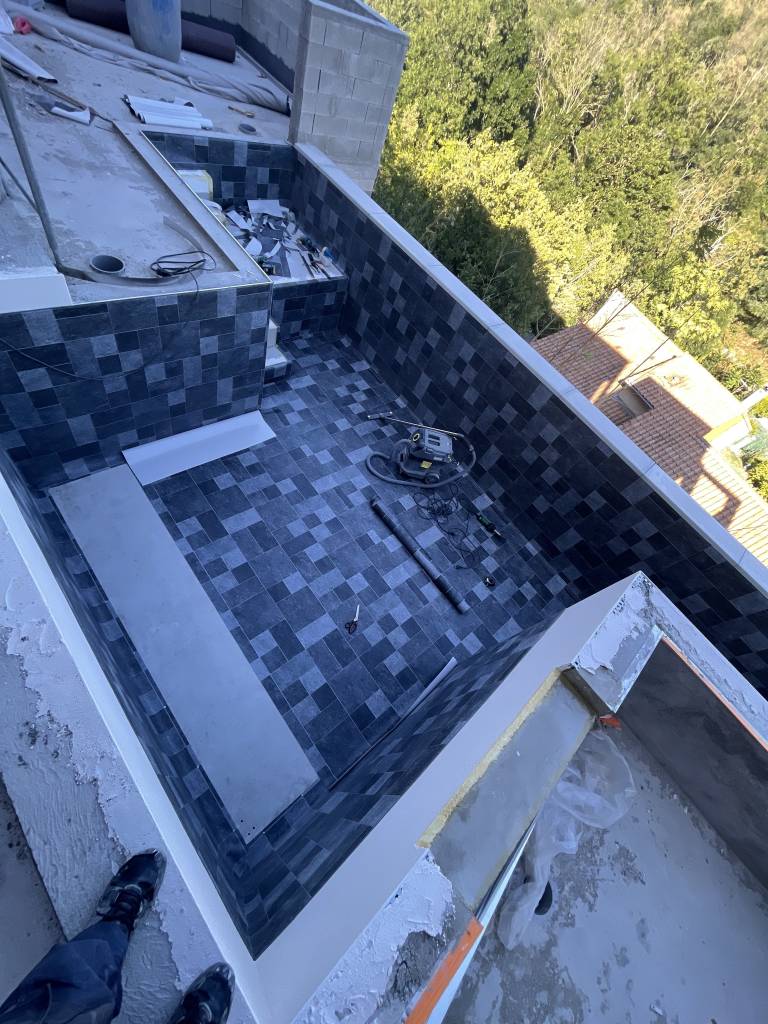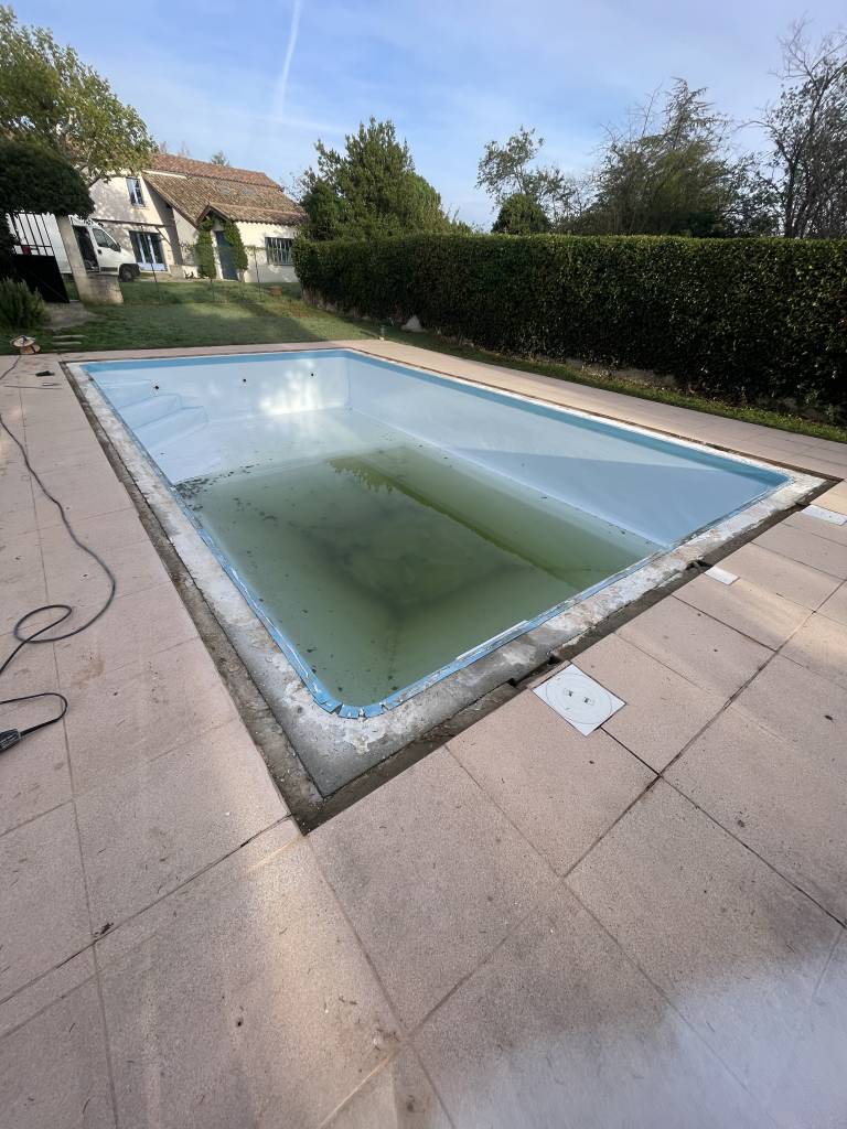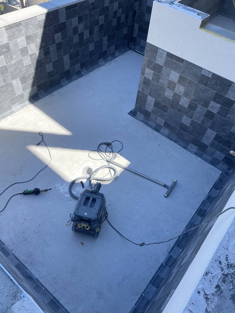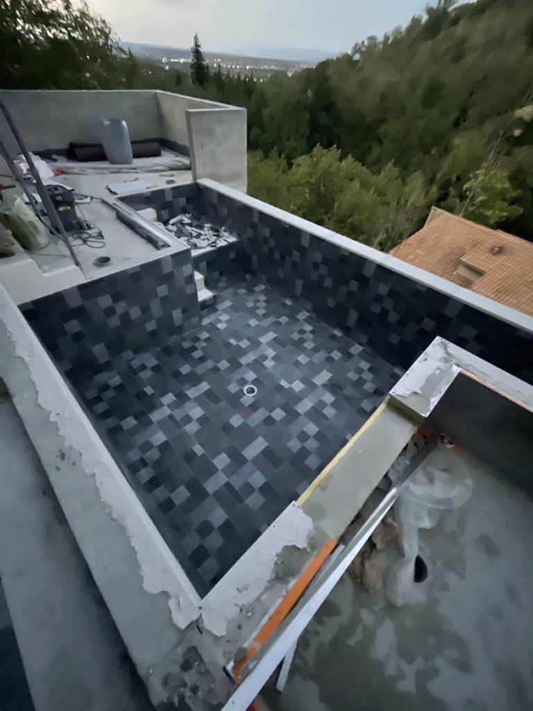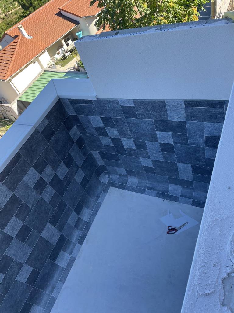 Reprise du fond, des escaliers et des plages / Pose d’un PVC armé