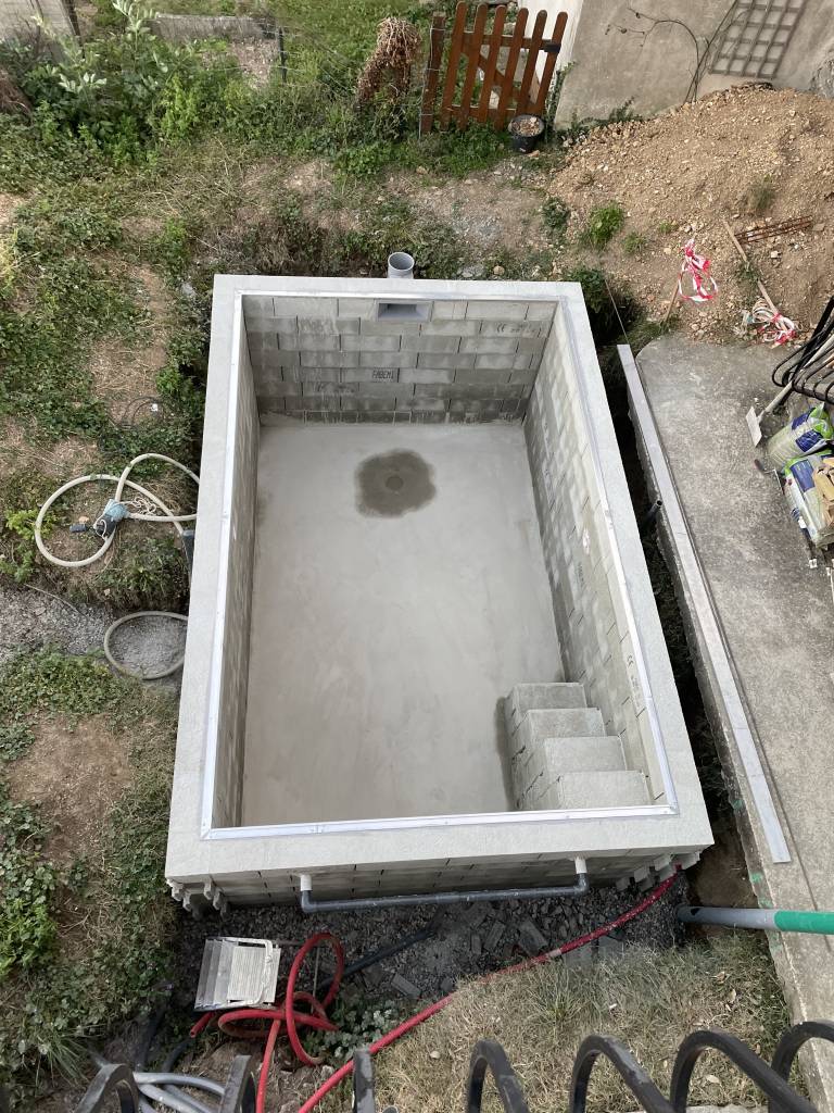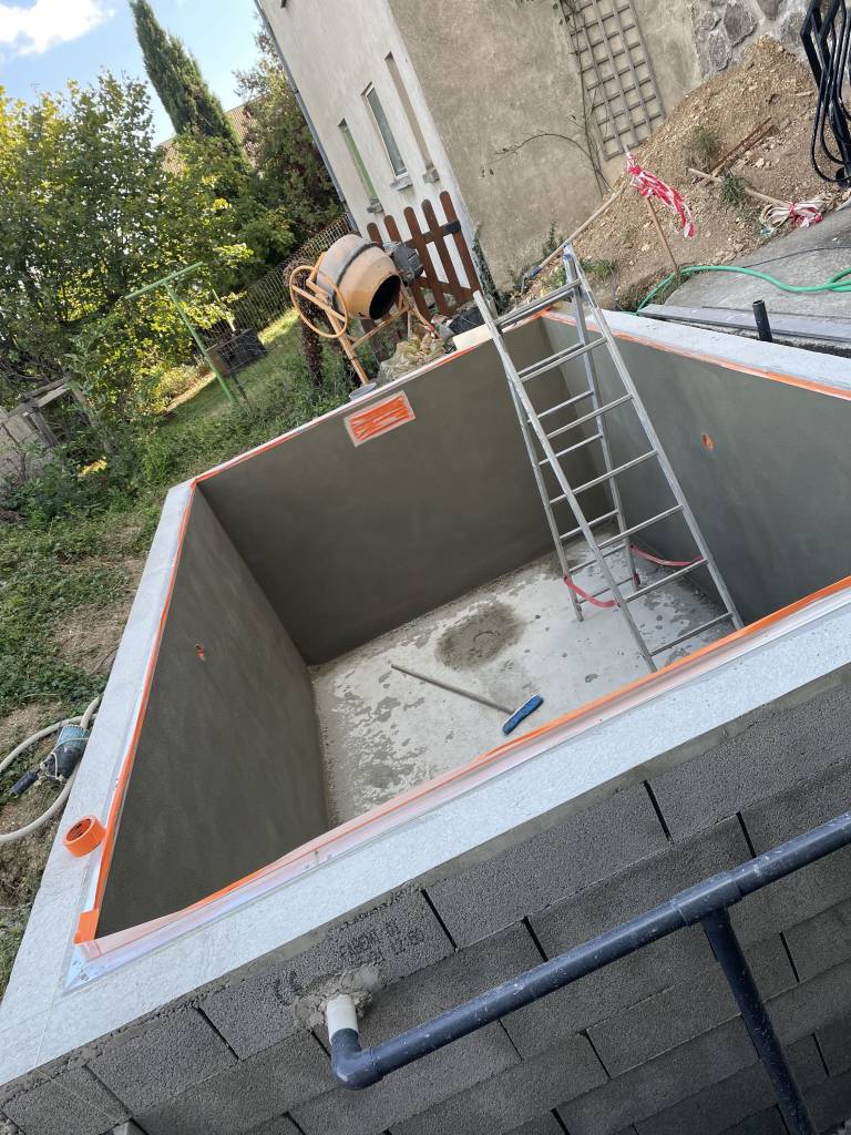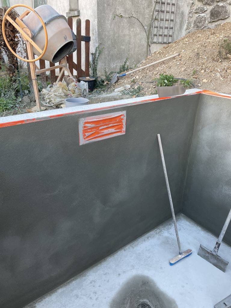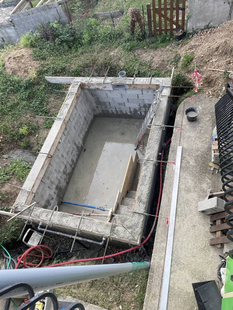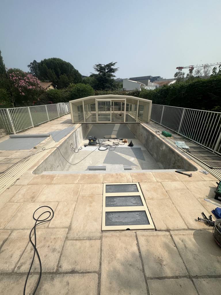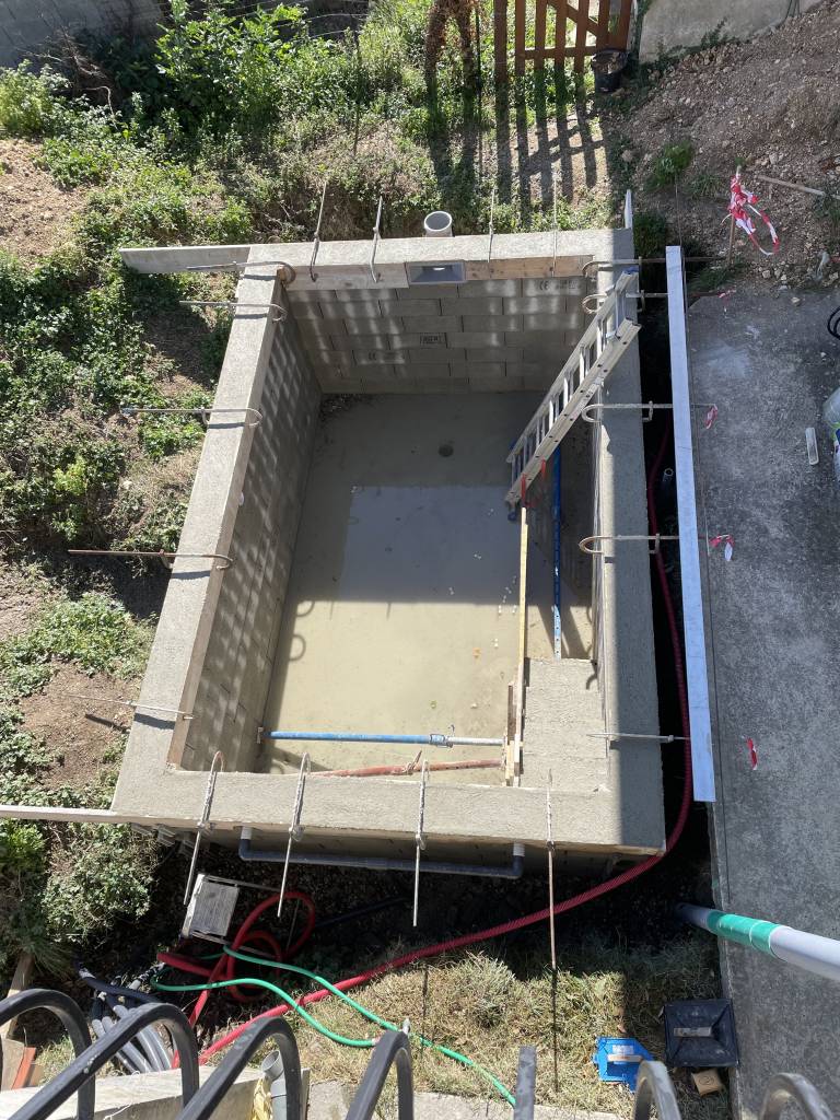 Création du trou, maçonnerie, local technique, enduits / Pose d’un PVC armé / Aménagement des plages