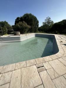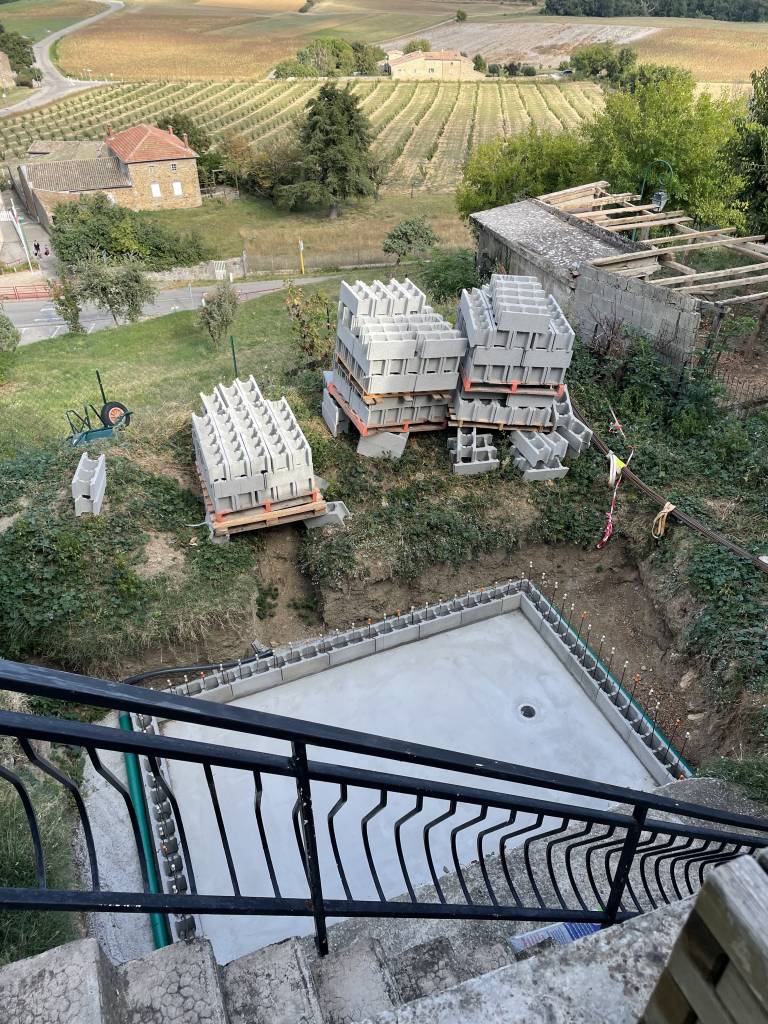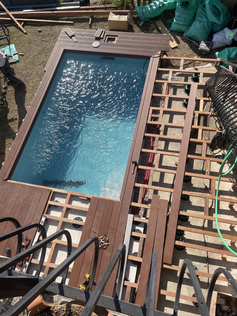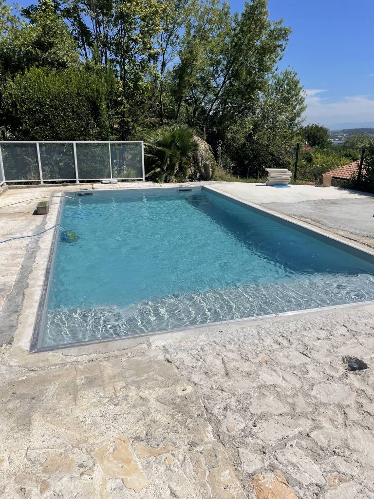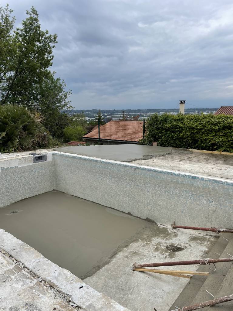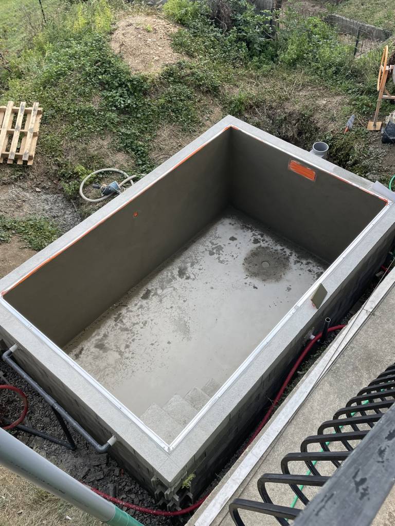 Création du trou, maçonnerie, local technique, enduits / Pose d’un PVC armé / Aménagement des plages