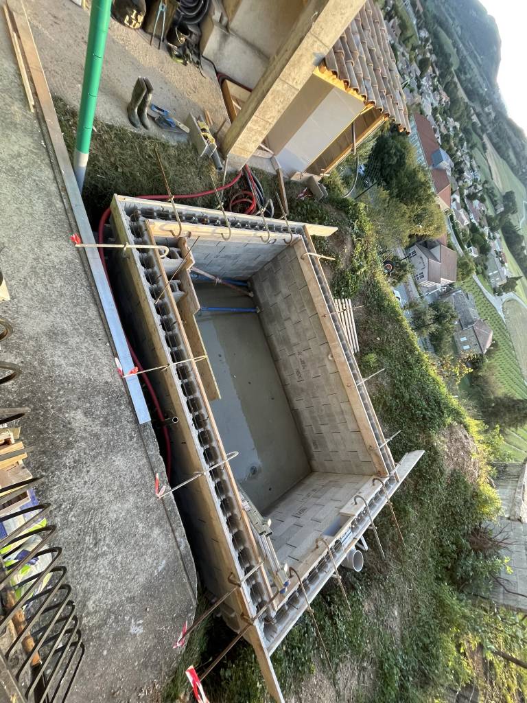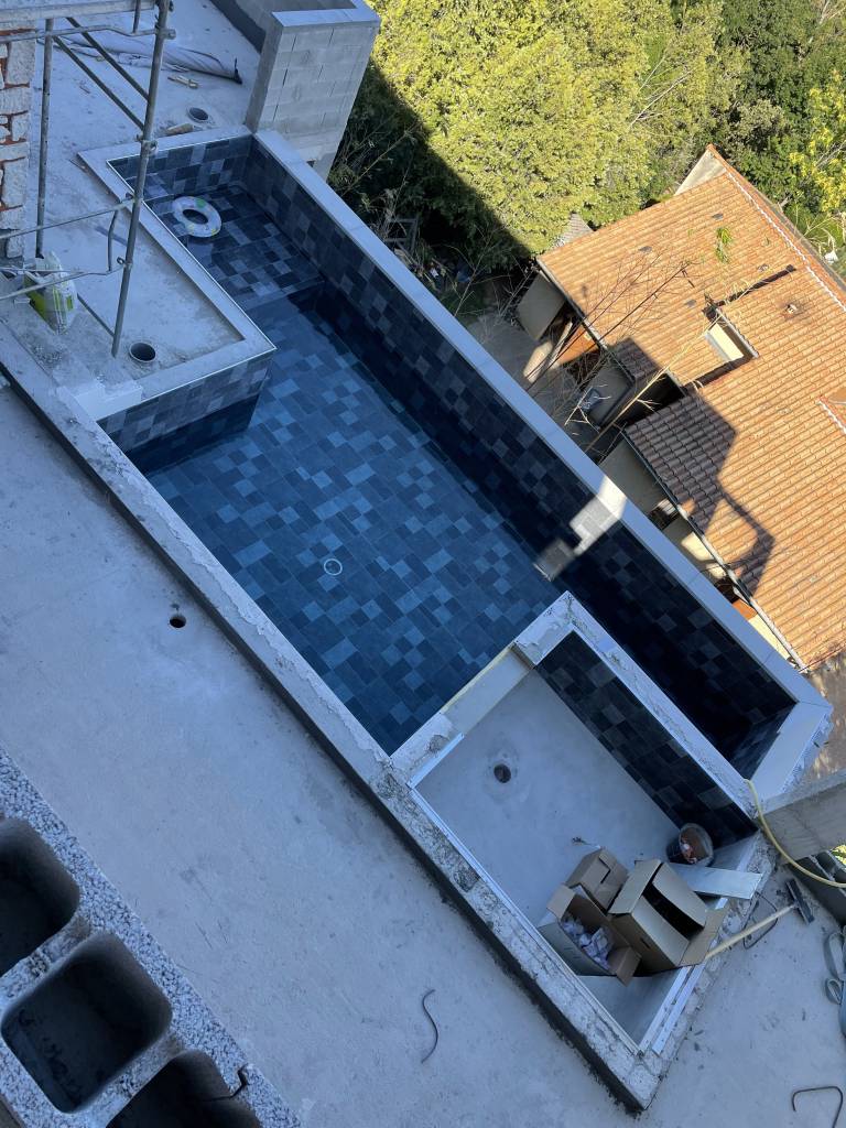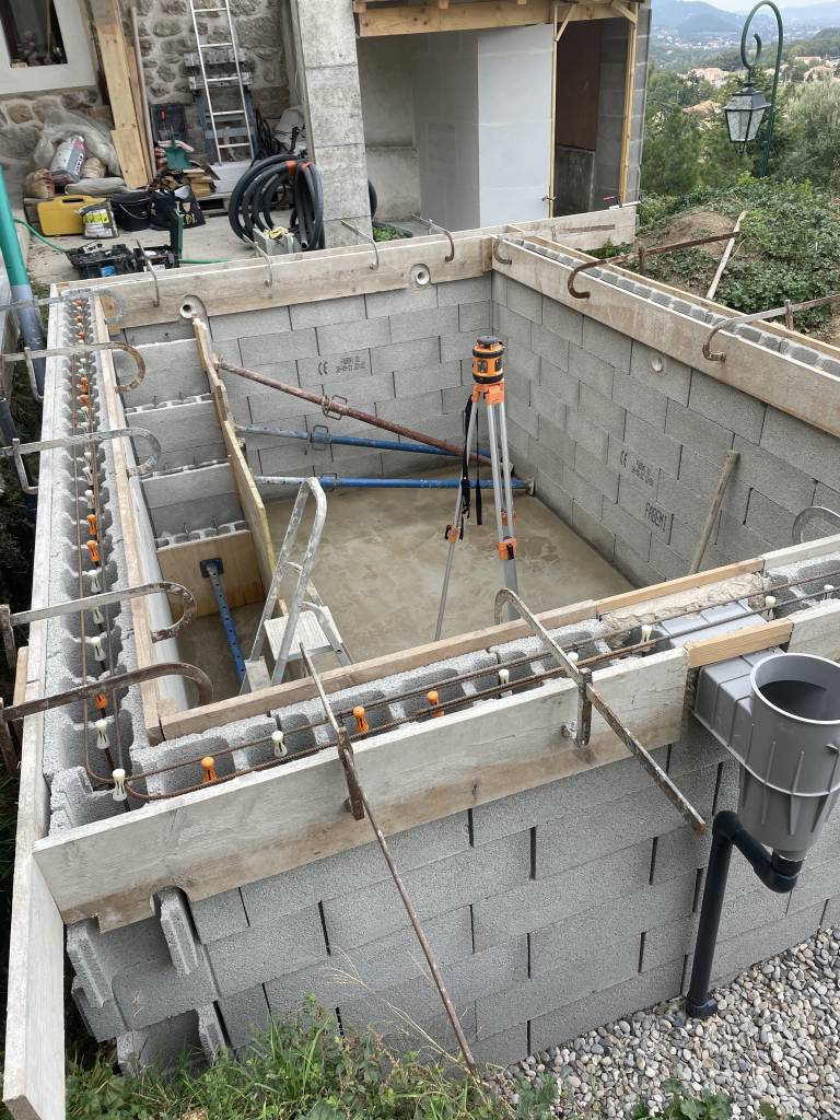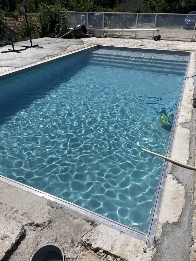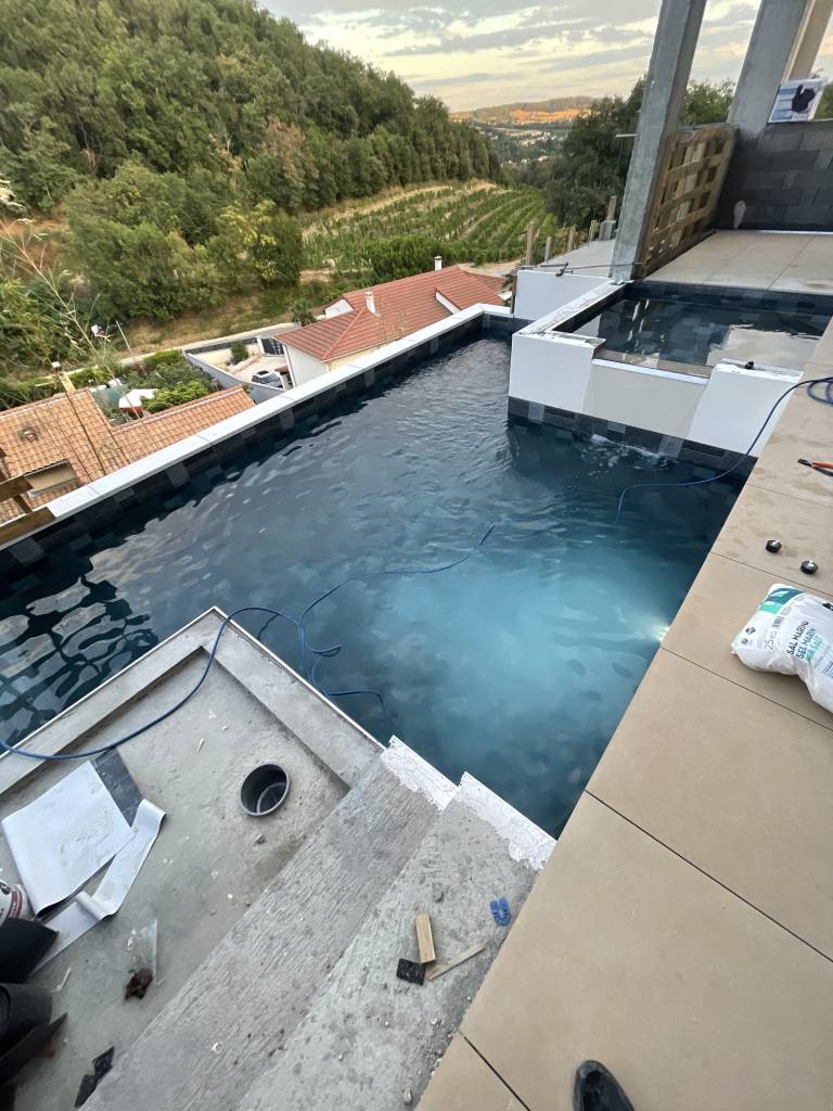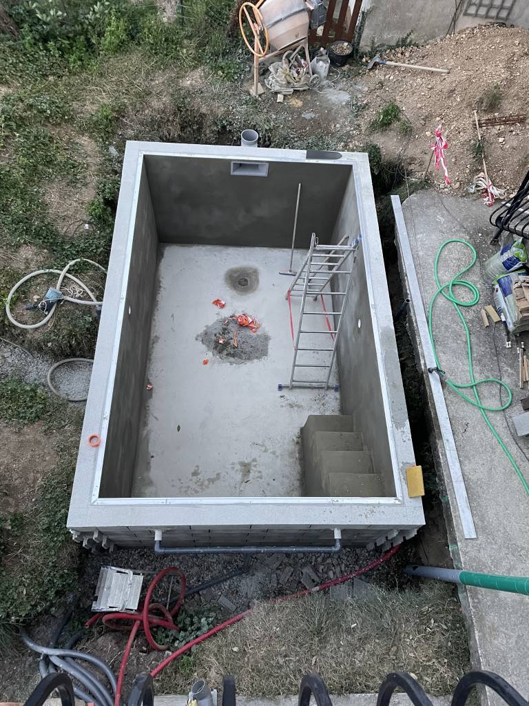 Création du trou, maçonnerie, local technique, enduits / Pose d’un PVC armé / Aménagement des plages